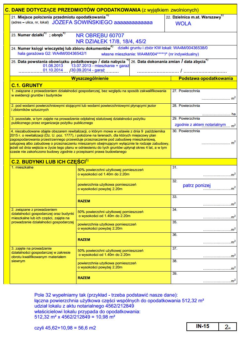 rubryka 25 - uzupełnia osoba składająca IN-15 po raz pierwszy po zakupie mieszkania/miejsca postojowego