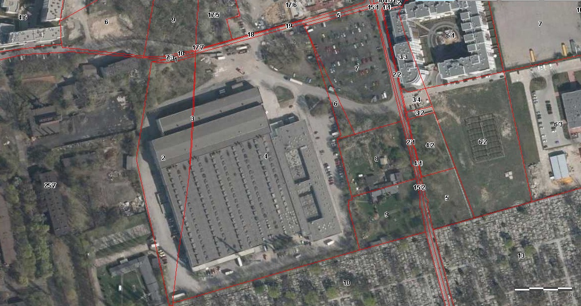 Okazuje się, że trójkątna działka w rzeczywistości jest częścią większego terenu sięgającego pod tą wielką halą na przeciwko Verdisu aż do murów cmentarza (numer działki 146518_8.0710.4). Chętnie sprawdzilibyśmy w księgach aktualny stan tej działki. Czy ktoś z Was przypadkiem zna może jej numer KW?